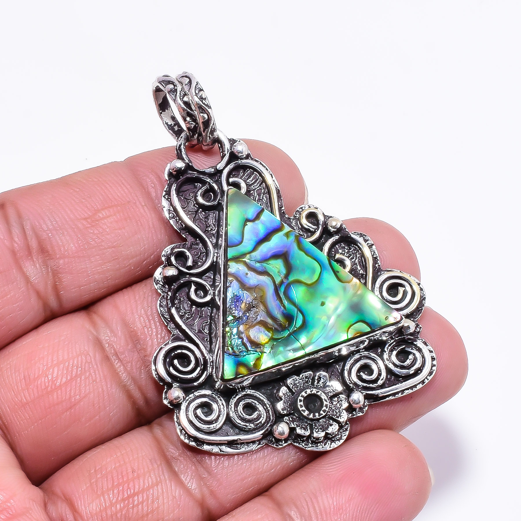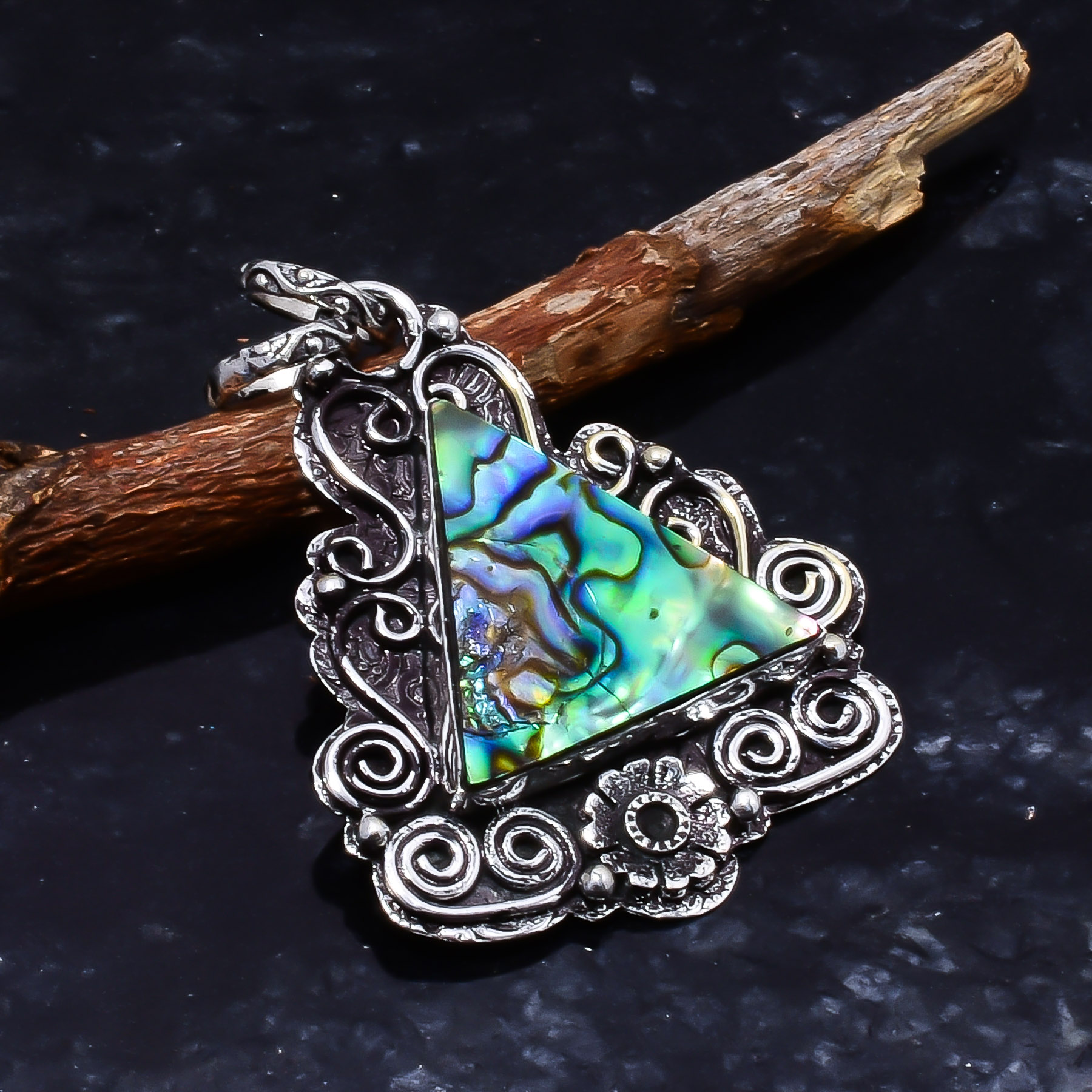 Handcrafted Abalone Shell Gemstone Pendant in 925 Sterling Silver by Nakshmart. This ocean-inspired pendant features natural iridescent blue-green hues, premium silver craftsmanship, and elegant handmade design — a true statement of coastal beauty.