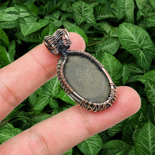 Experience power, elegance, and natural energy with this handcrafted Apache Gold Pyrite Copper Wire Wrapped Pendant. Featuring a stunning natural Apache Gold gemstone known for its bold contrast of shimmering gold and deep black tones, this pendant creates a striking and luxurious statement piece. Wrapped securely in high-quality pure copper wire, the pendant blends artistic craftsmanship with spiritual meaning. Copper amplifies the stone’s natural energy, while the polished wire design adds durability, beauty, and timeless appeal. Apache Gold Pyrite is known as a stone of grounding, protection, and confidence. It enhances strength, shields from negativity, and stimulates inner power—making it ideal for meditation, manifestation, and everyday energy balance. Each pendant is 100% handmade, making every piece unique, with its own natural patterns and texture.