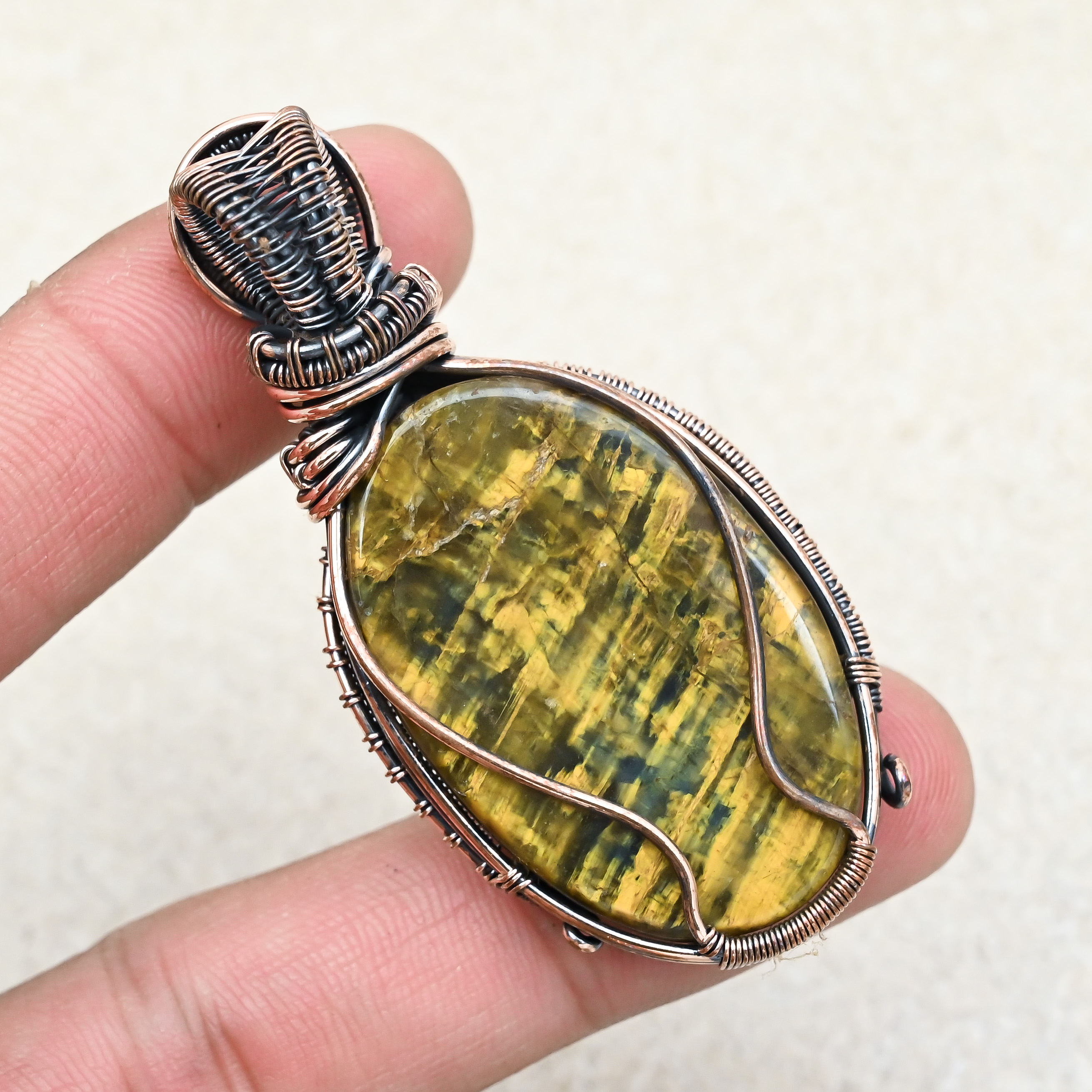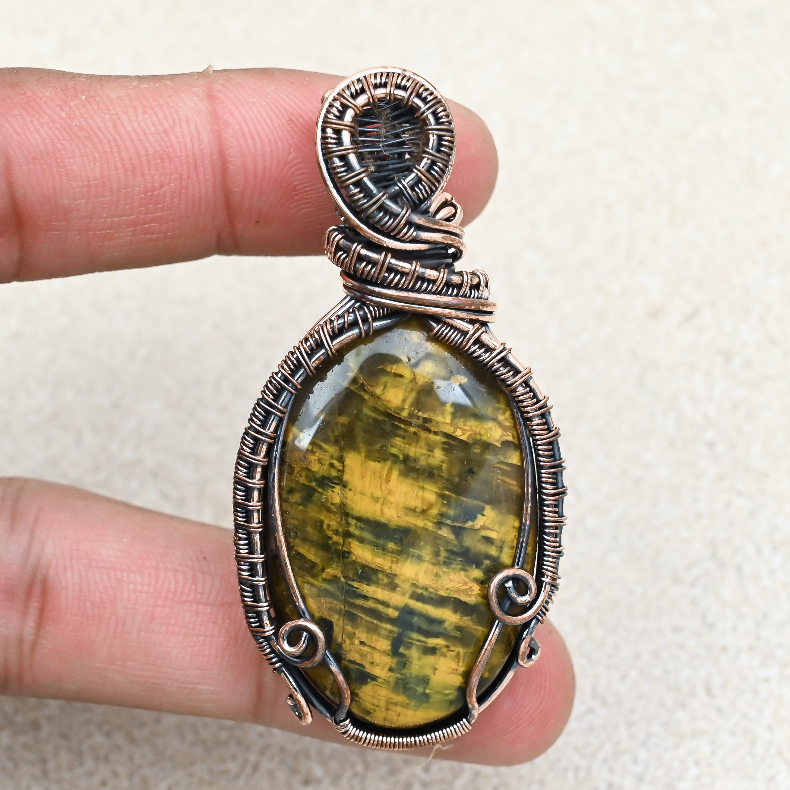 Handmade Copper Wire Wrapped Tiger Eye Gemstone Pendant