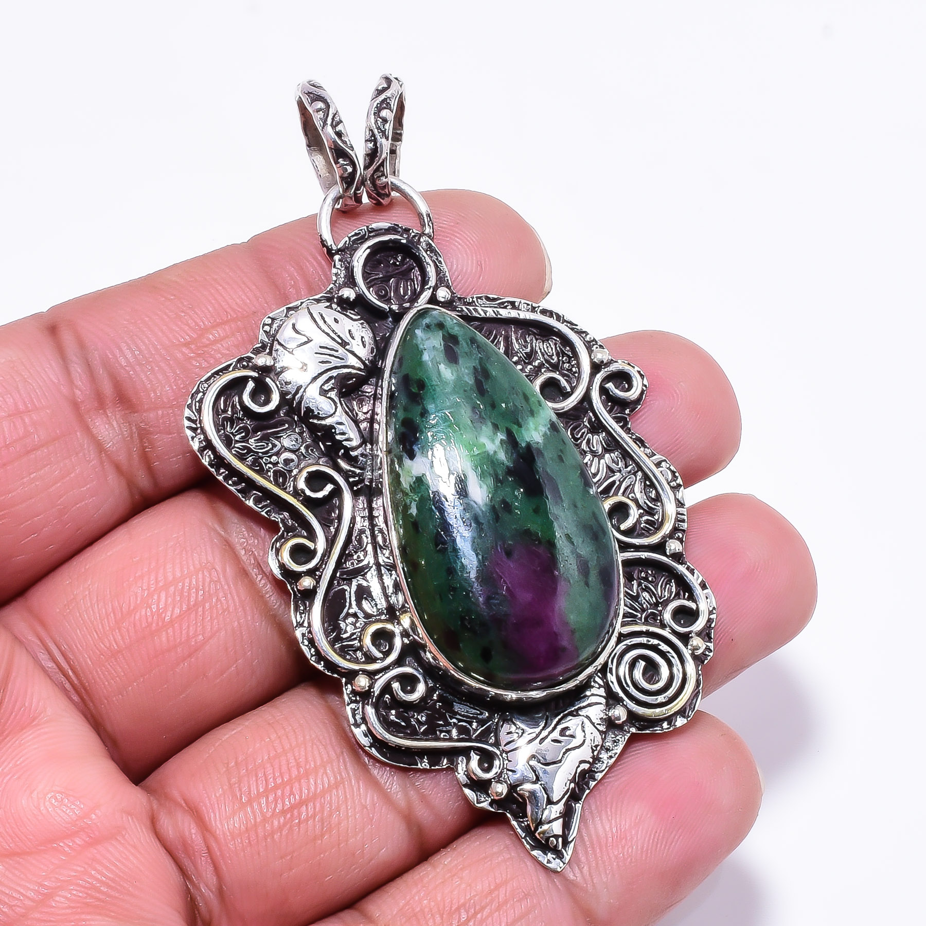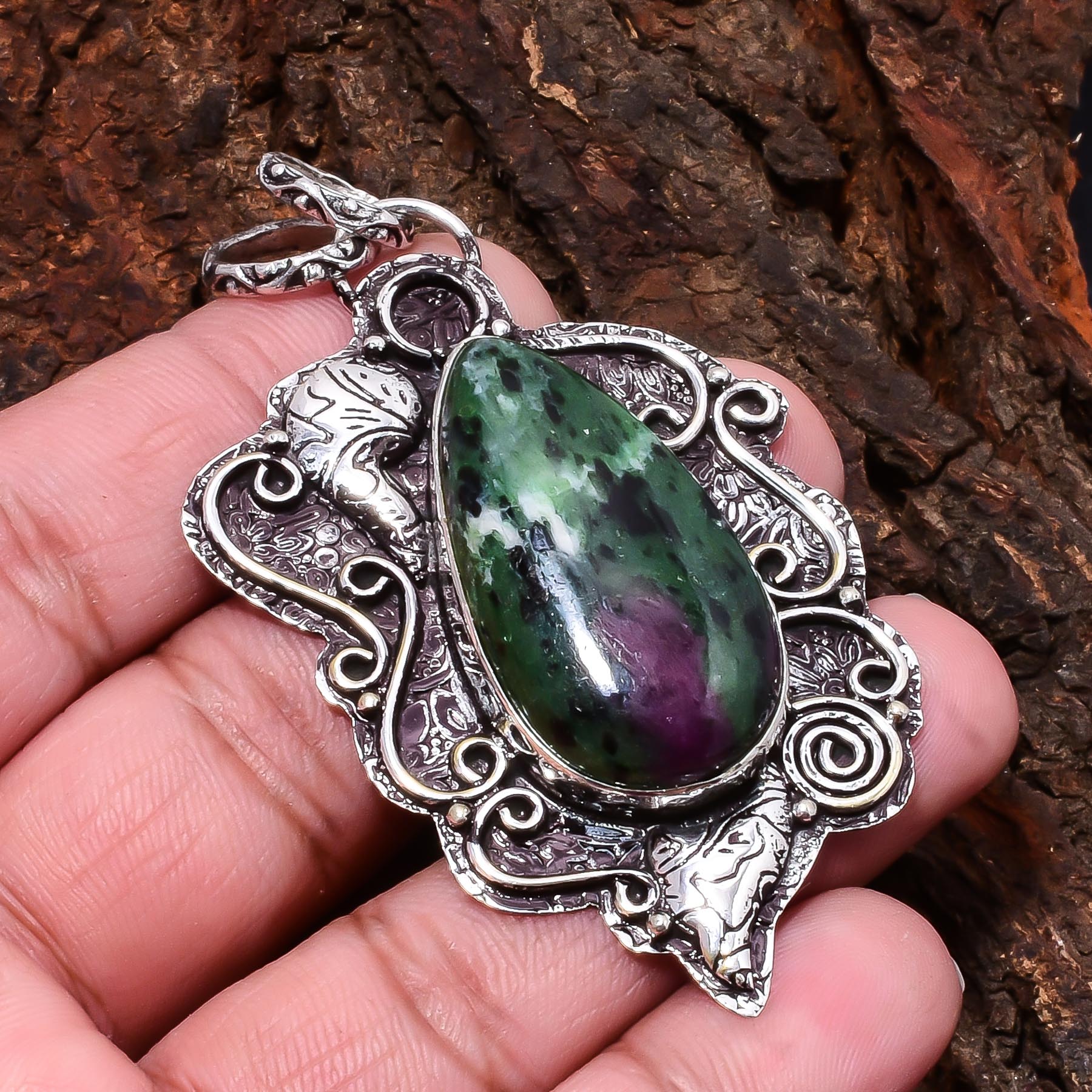 Ruby Zoisite Gemstone 925 Sterling Silver Pendant