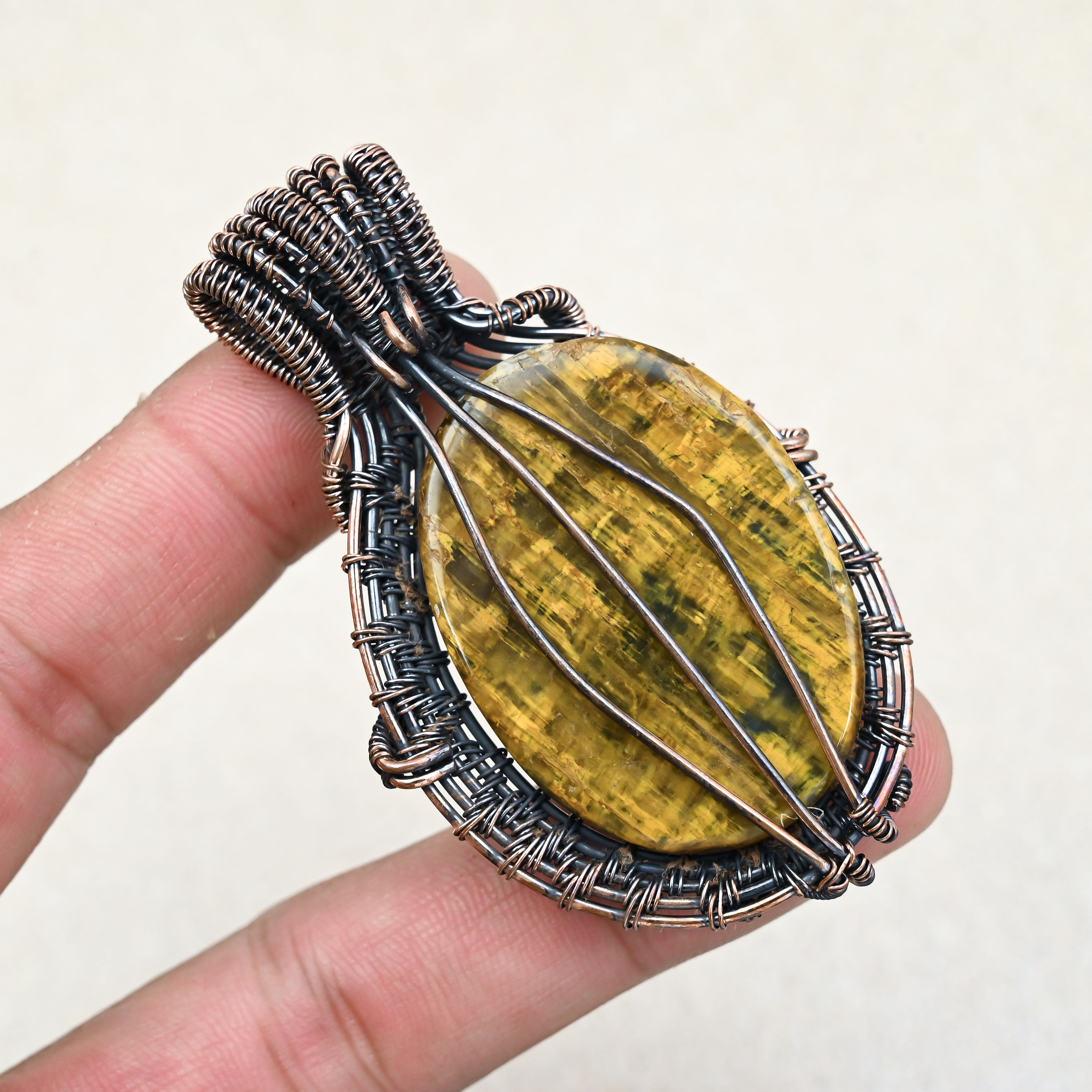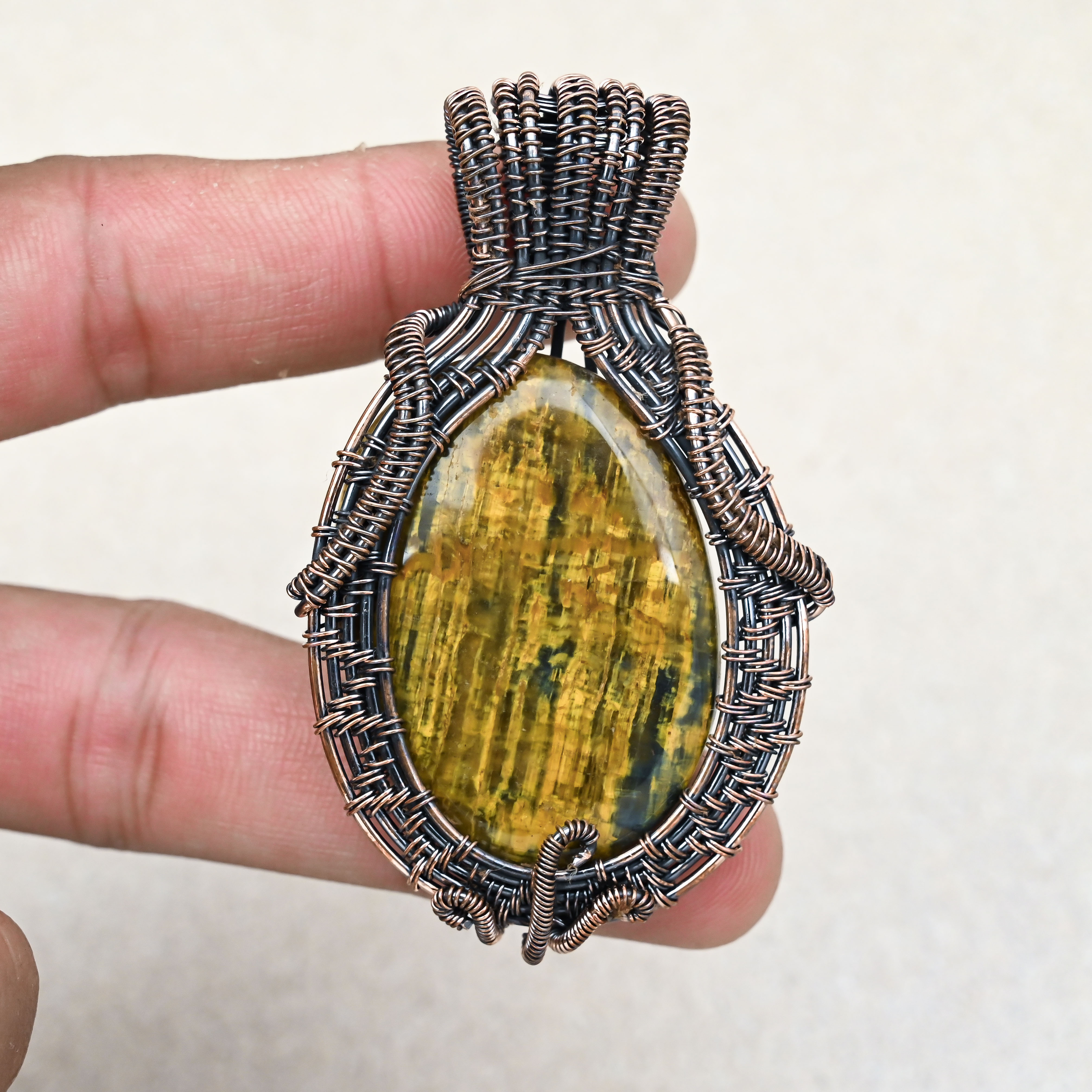 Handcrafted Tiger Eye Copper Wire Wrap Pendant