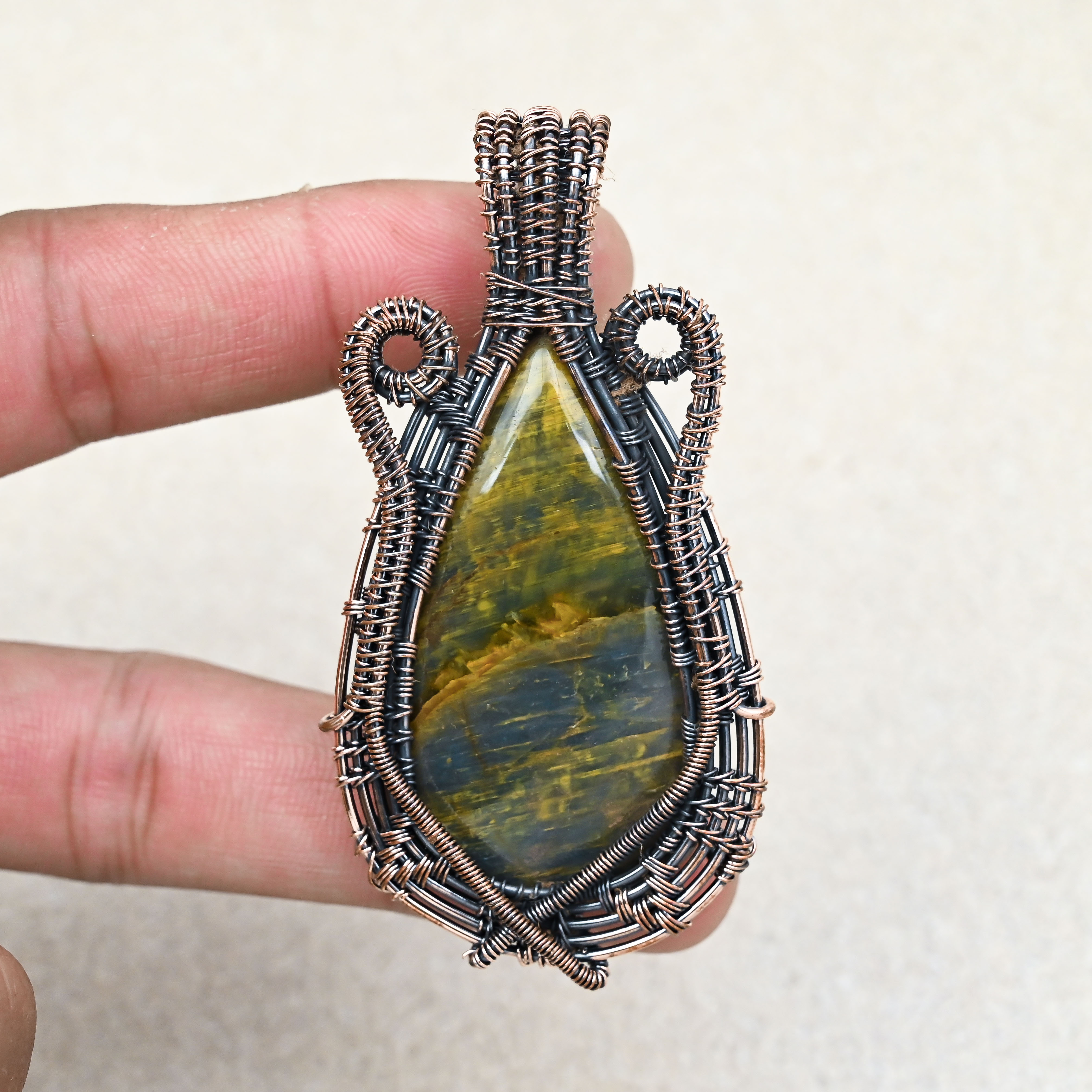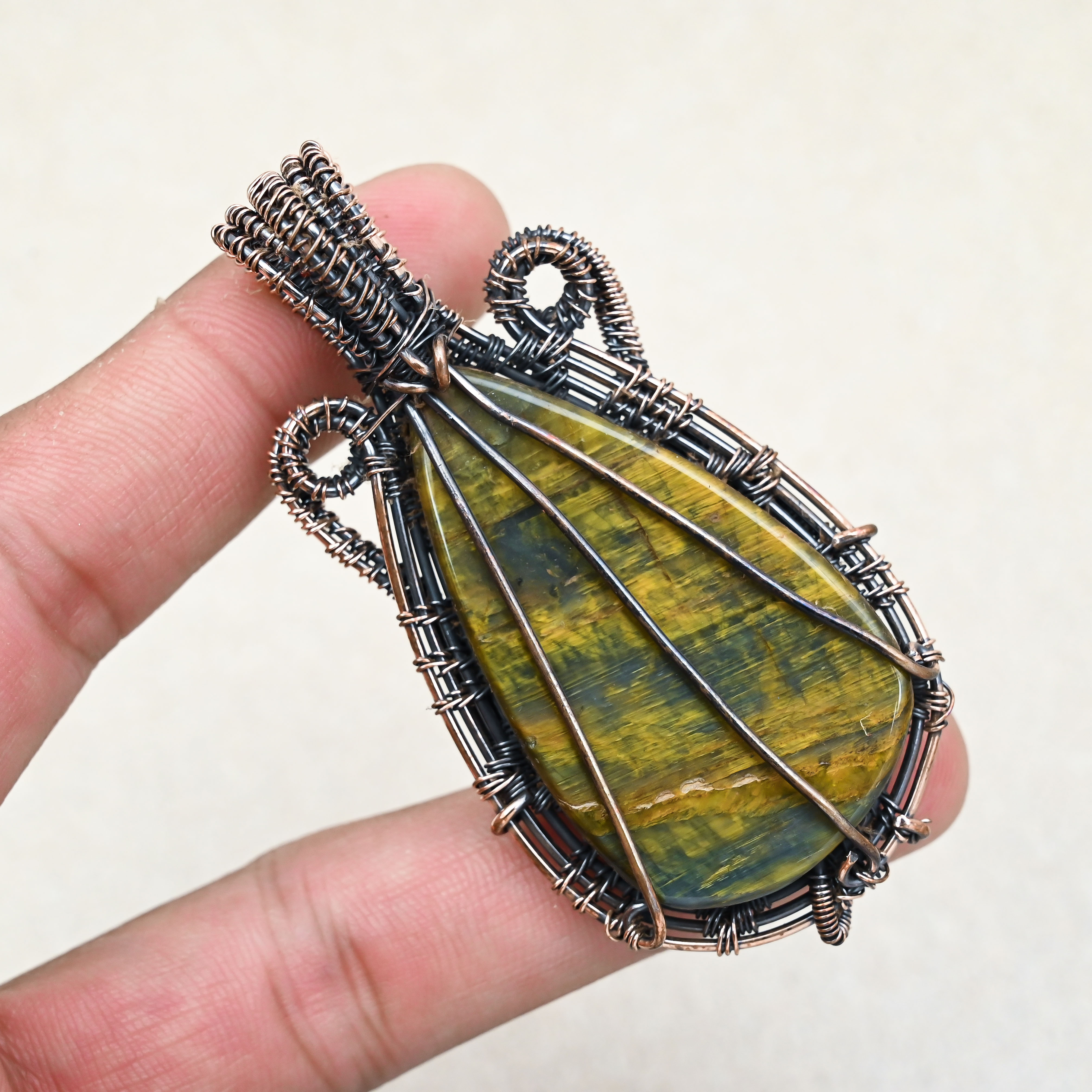 Tiger Eye Healing Crystal Copper Wire Wrapped Handmade Pendant